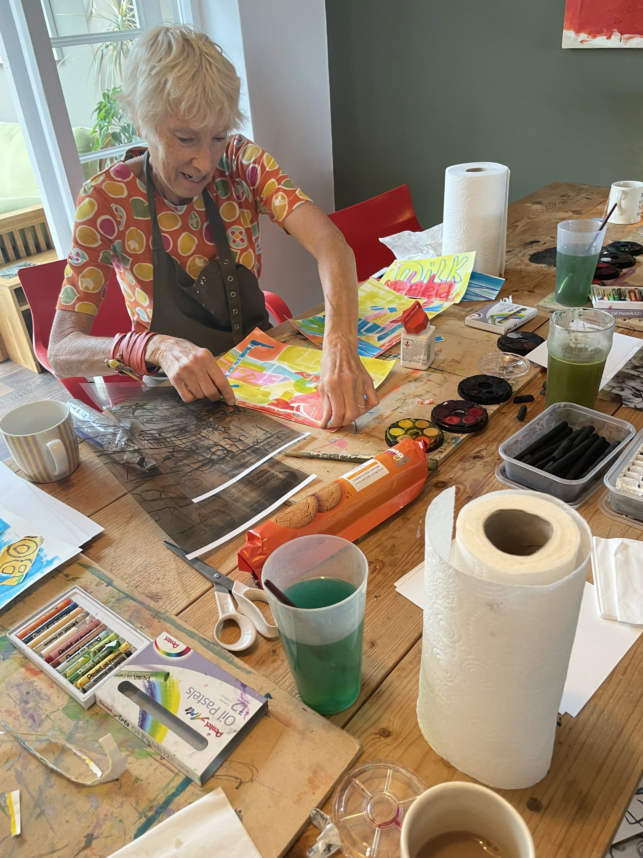 In my home and studio in Beeston Regis, I run small, relaxed art workshops that are playful, hands-on, and open to everyone. No experience is needed, it’s all about experimenting, loosening up, and finding the joy in making.
